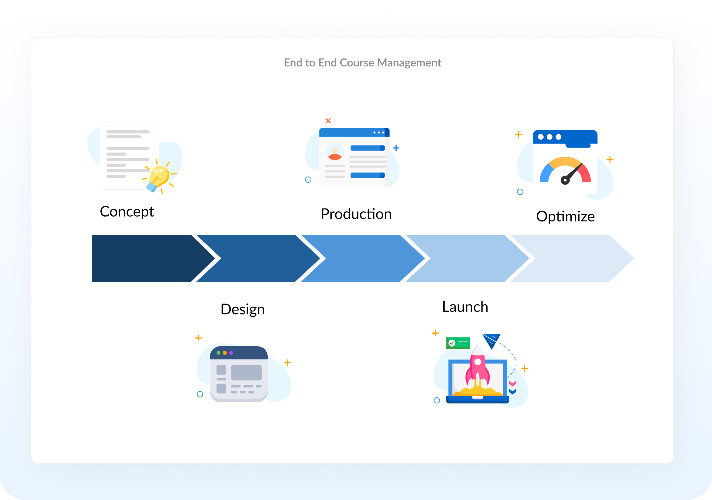 From initial idea to launch and beyond, we manage the entire digital course lifecycle, ensuring seamless coordination across design, production, delivery, and optimization.