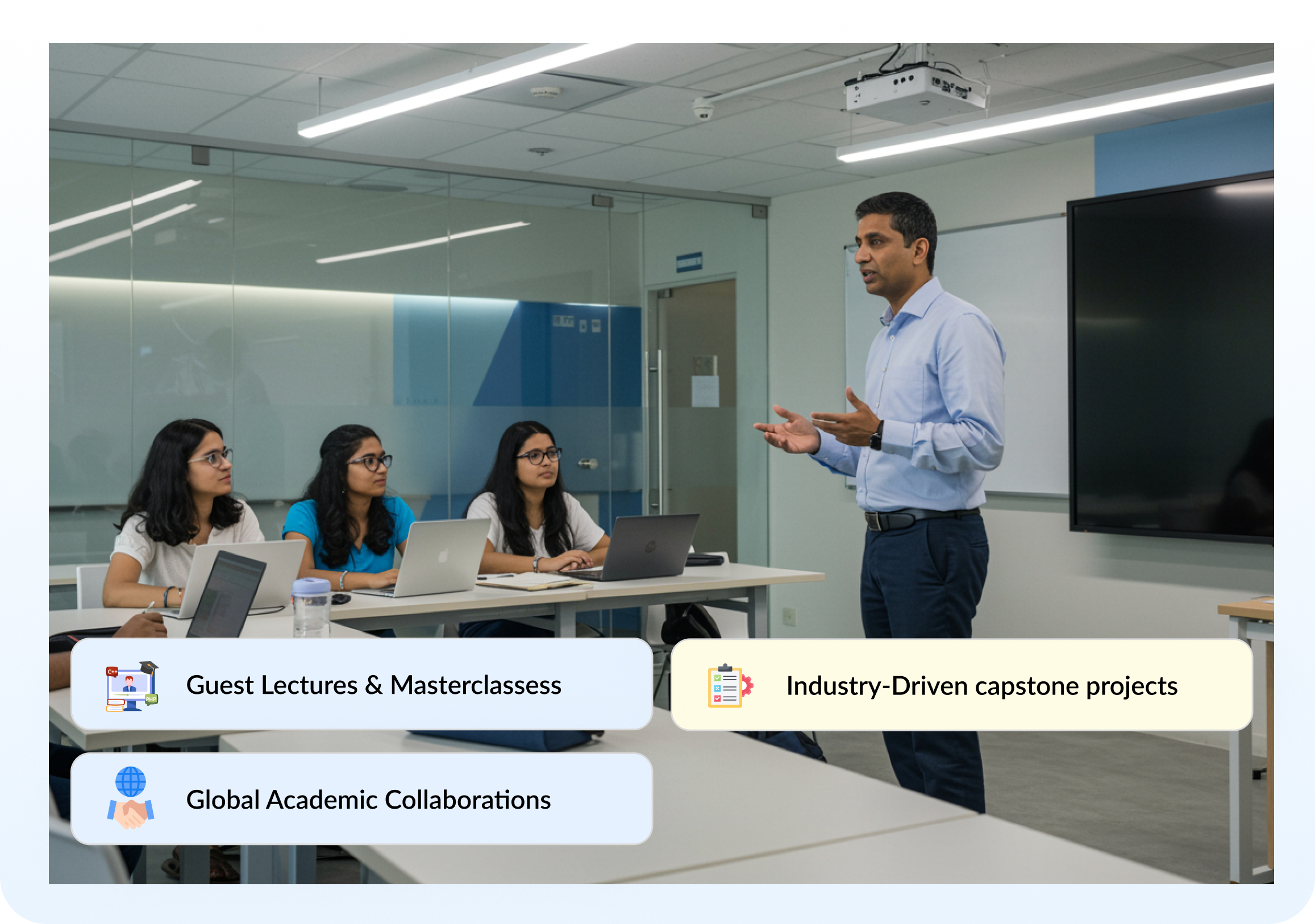Bring real industry practitioners into your classrooms.Students learn directly from professionals actively working in their domains—adding practical relevance to academic learning.Embed industry-aligned learning directly into your academic calendar.